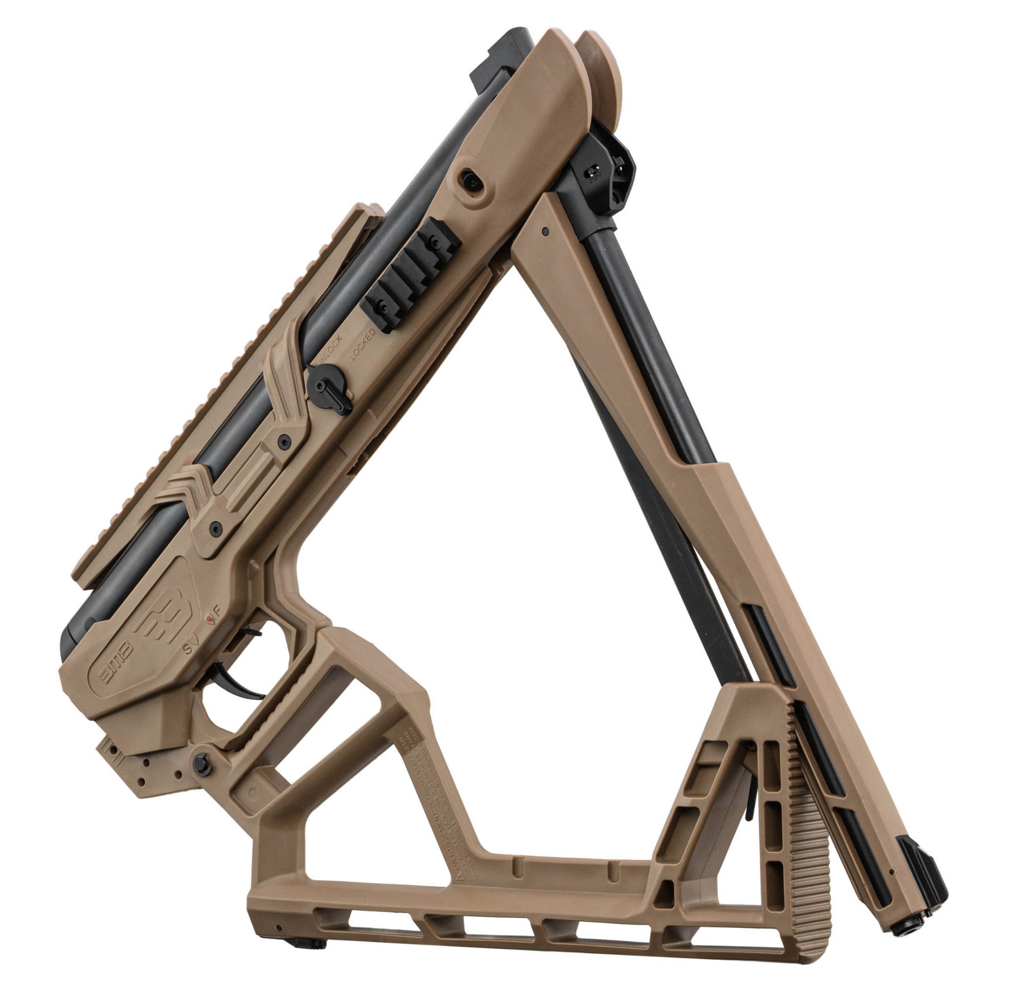 Łamana wiatrówka o unikalnej, składanej konstrukcji, praktyczne i pionierskie rozwiązanie w świecie wiatrówek, dedykowane zwłaszcza miłośnikom survivalu. Kompaktowa konstrukcja ułatwia transport przy plecaku czy w bagażniku samochodowym, przechowywanie jej na półce lub na ścianie. Wodoodporna, trójkątna walizka z pianką stanowi doskonałe miejsce na transport dodatkowego wyposażenia czy śrutu i akcesoriów.